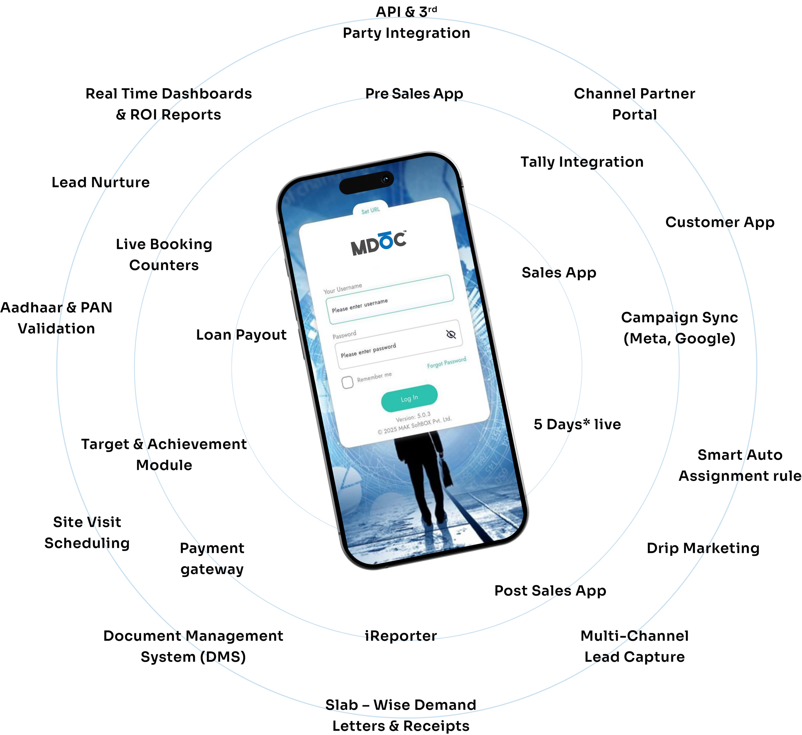 From lead capture to handover, MDOC unifies pre-sales, token events, sales, post-sales, DMS and more into a single, mobile-first suite built for builders.